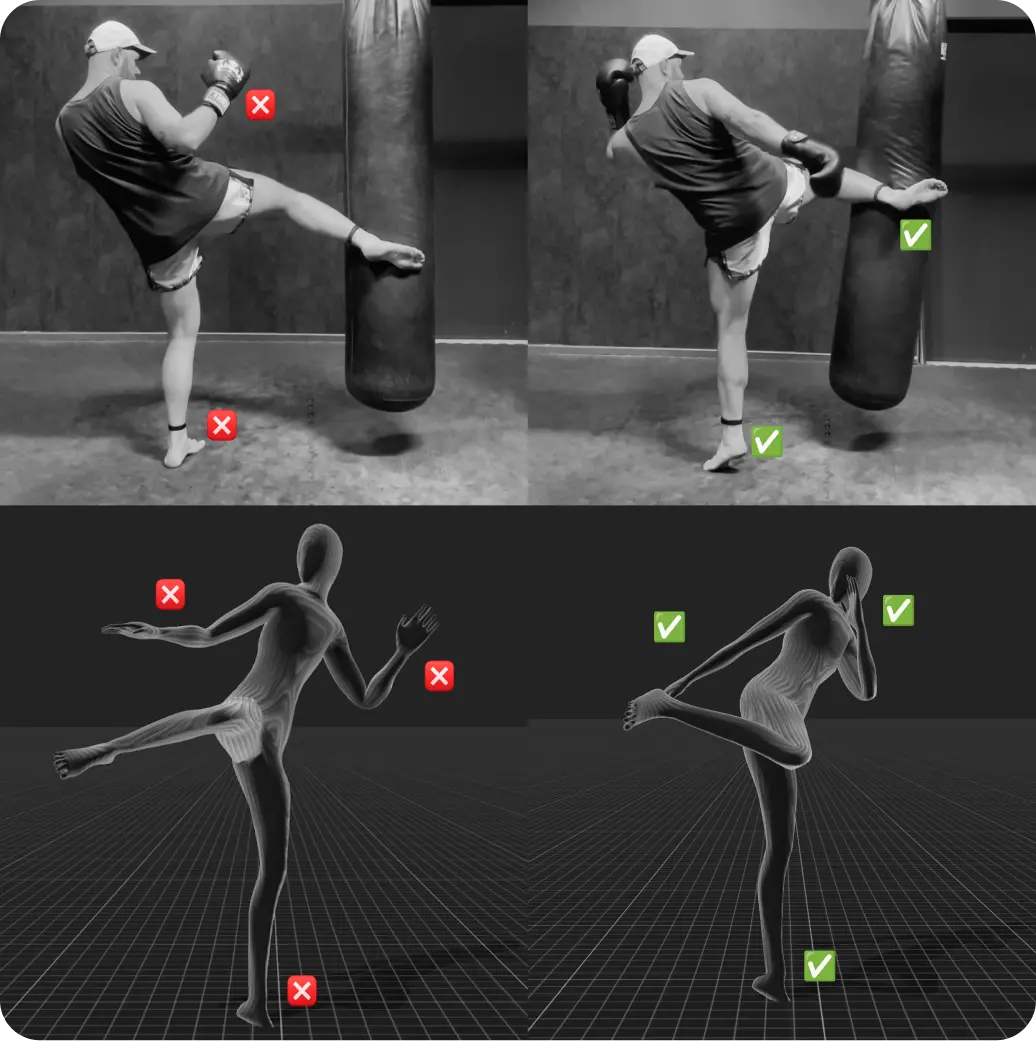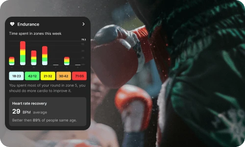 Know your strengths and weaknesses with the help of your personal AI coach. The app shows a 360° view of your body, strength, speed, punch angles, and other metrics depending on the sport.